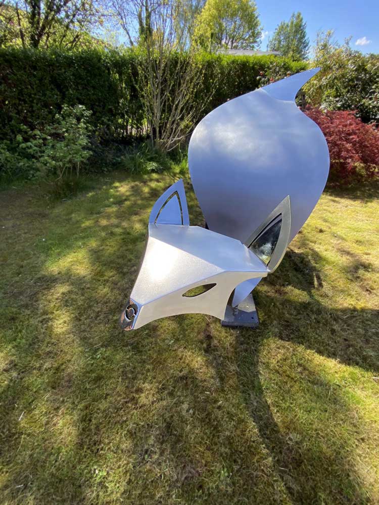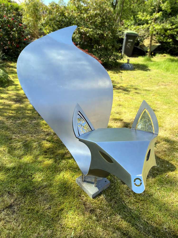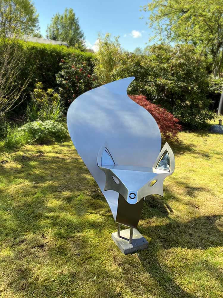 Het resultaat is een RVS kunstwerk van bijna 2 meter hoog. Het beeld staat in de tuin en valt op zonder te domineren. De vorm van de kop en ogen maken het karakter van de vos voelbaar is. Terwijl het niet letterlijk is. Daardoor voelt het beeld eigen en blijft het tegelijk ingetogen. Het past goed in het groen van de tuin en heeft een tijdloze uitstraling.